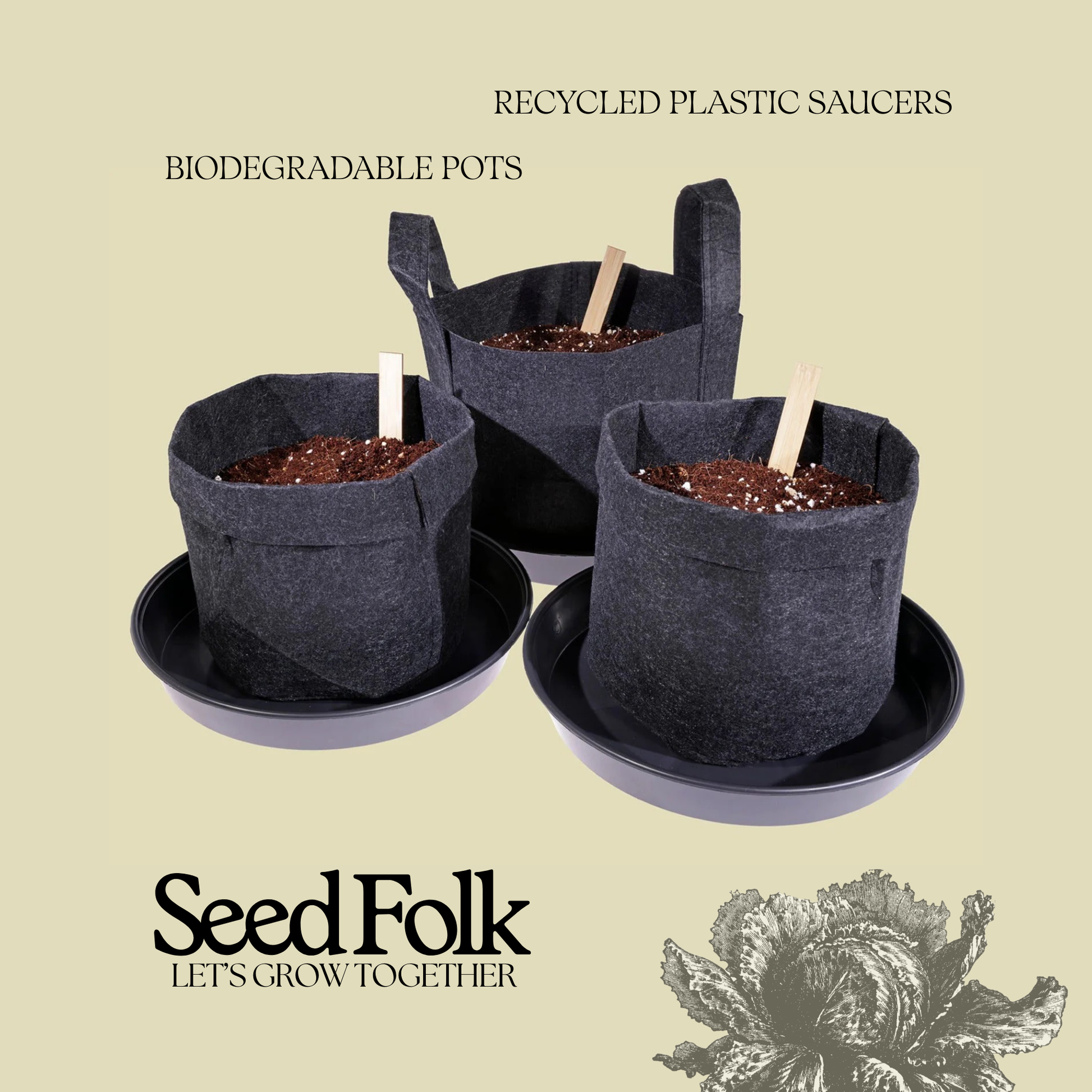 Our eco friendly fabric grow pots, a biodegradable alternative to traditional plastic pots. Made from recycled plastic and fibres, they are lightweight and achieve superior drainage and aeration which promote healthy root growth.